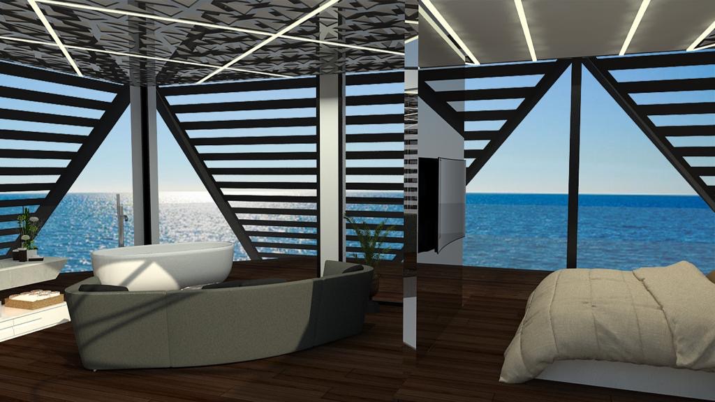 Design und Engineering eines schwimmendes Luxusappartements in Zusammenarbeit mit Nicolas Thomkins. 100% Aluminium.