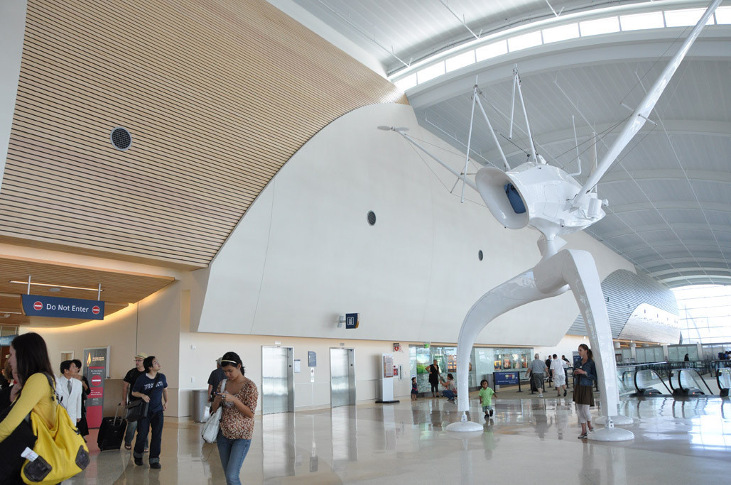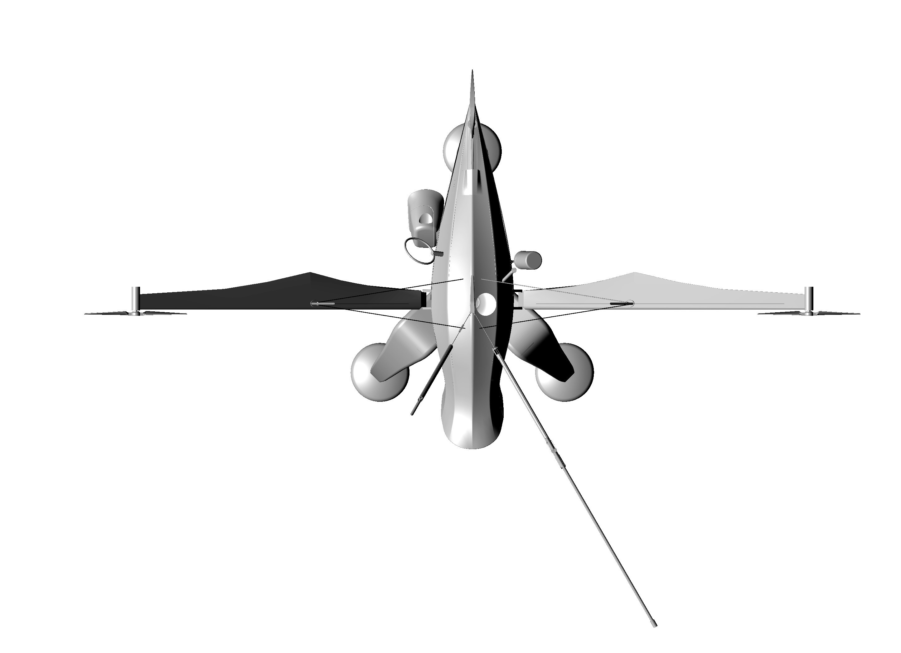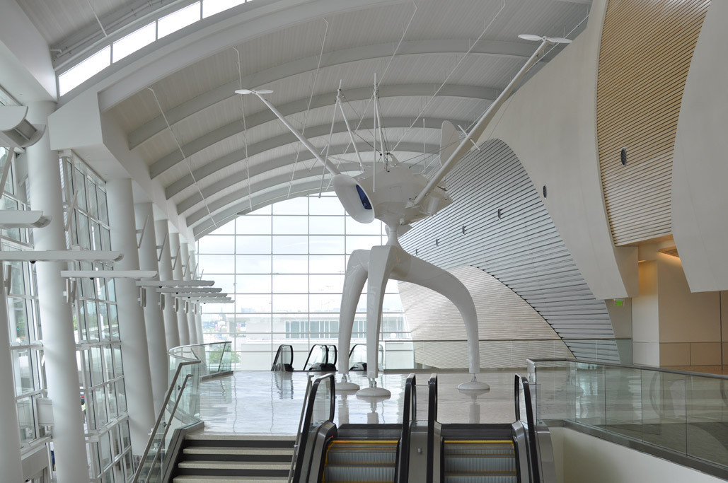 Technische Umsetzung der mechanischen Komponenten am Rumpf von Björn Schülkes "Space Observer" im Flughafen von San Jose, USA.