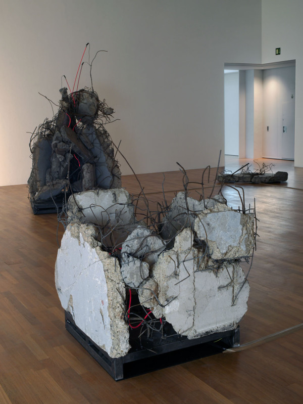 Statik und Herstellung der tragenden Stahlkonstruktion für die Installation ZwanzigZehn von Christian Keinstar im Kunstmuseum Bonn. Der größte Turm ist fast 4 Meter hoch. Die Betonbruchstücke wurden einzeln an die Gerüstkonstruktion geschweißt.