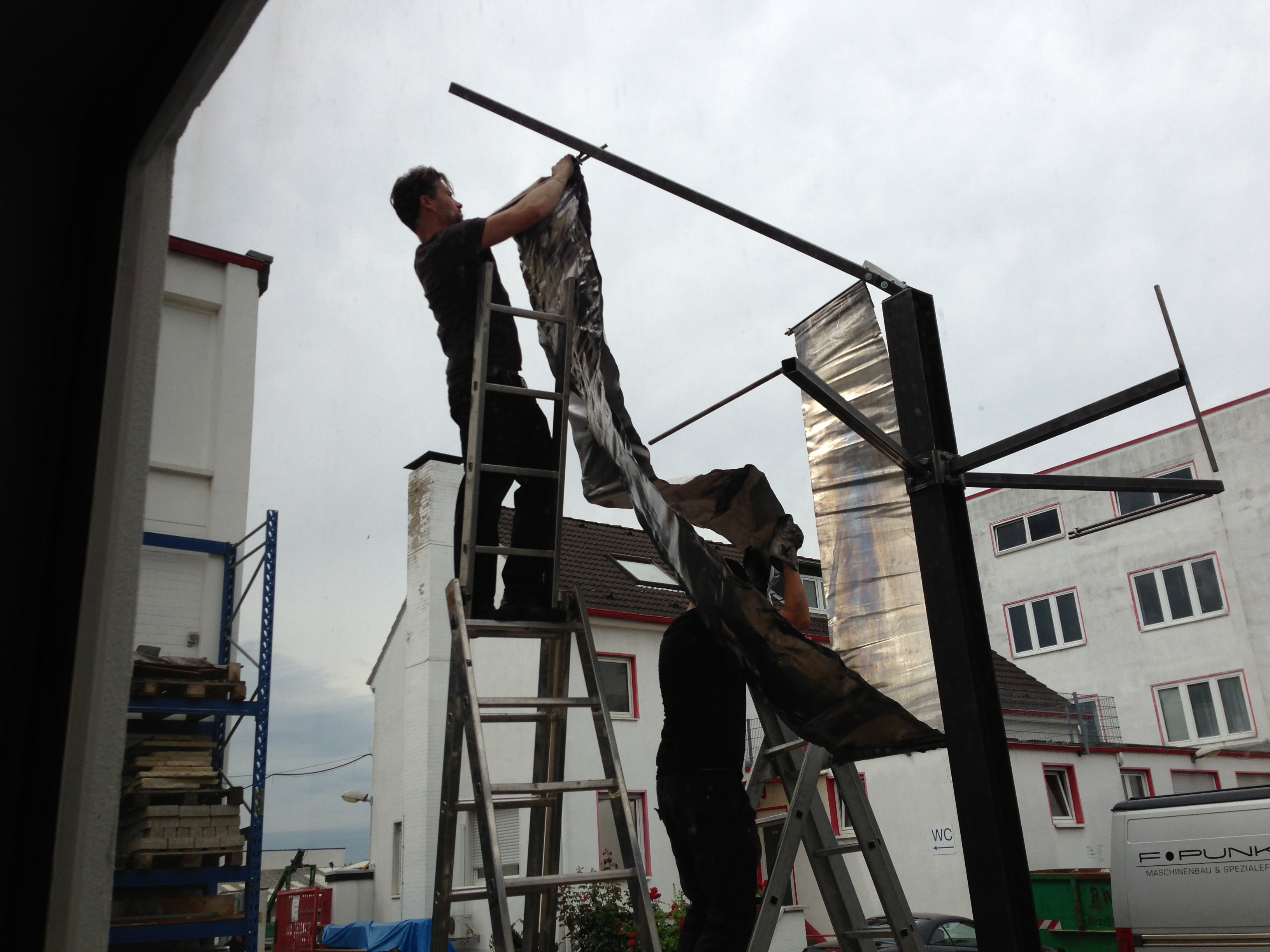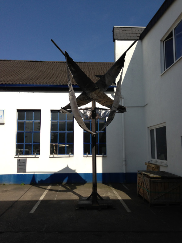 Stahlkonstruktion für eine Installation des Künstlers Christian Keinstar. Blei, Stahl, Beton.