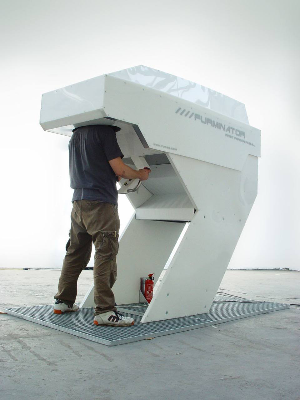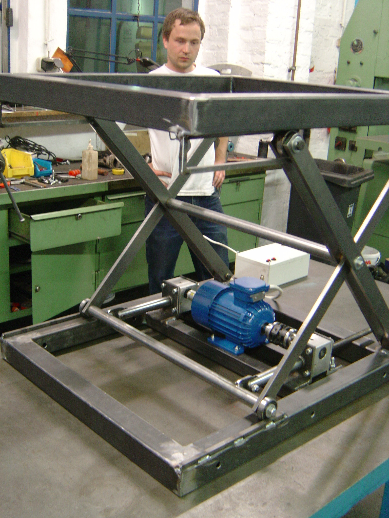 Hubtisch für Kunstprojekt First Person Pinball: Ermöglicht die Anpassung der Installation an unterschiedliche Körpergrössen.