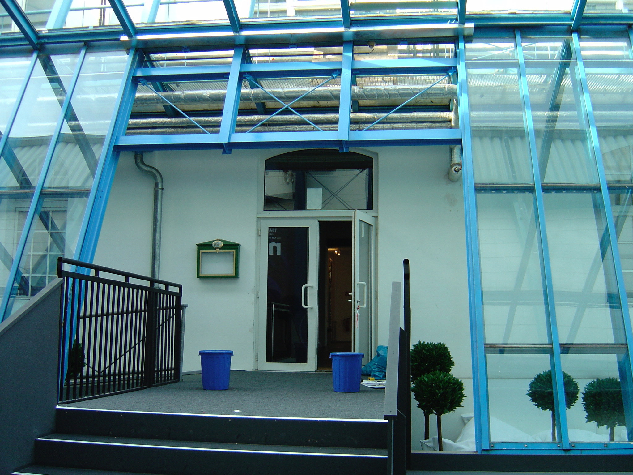 Glasfassadendurchbruch in MMC Studios, Hürth.