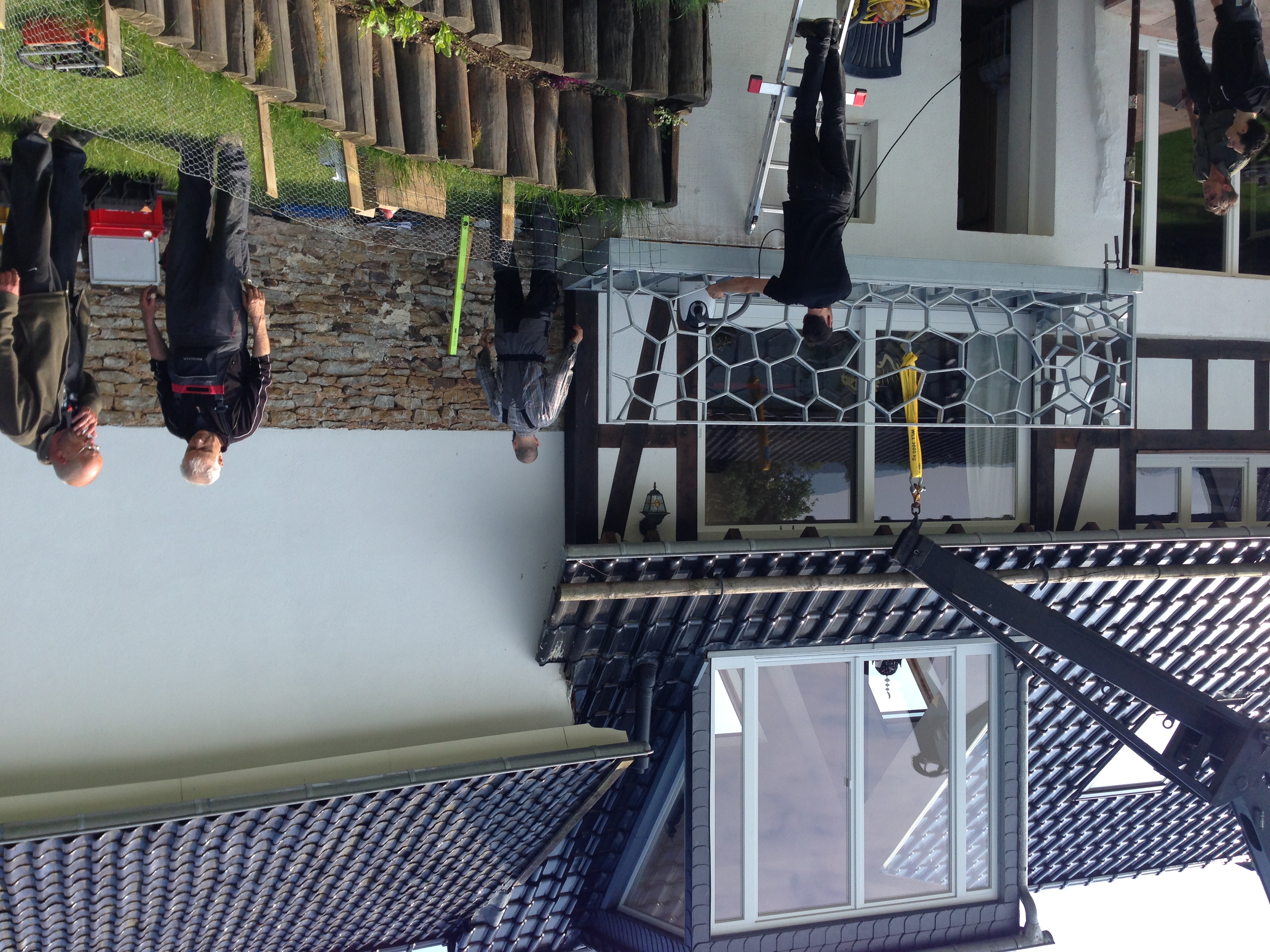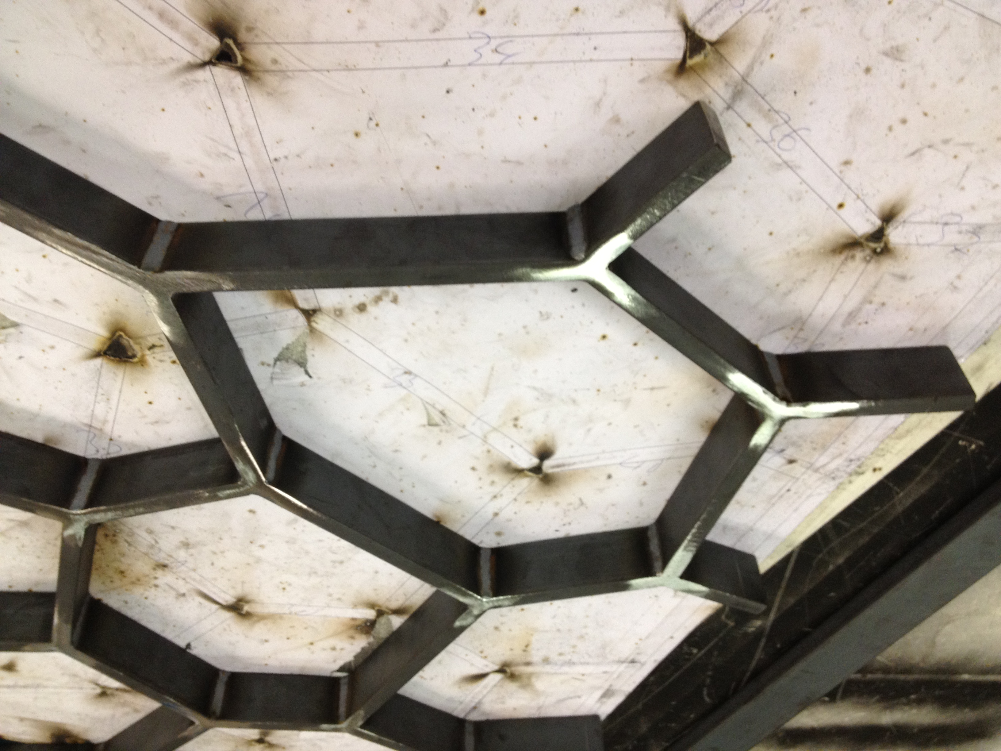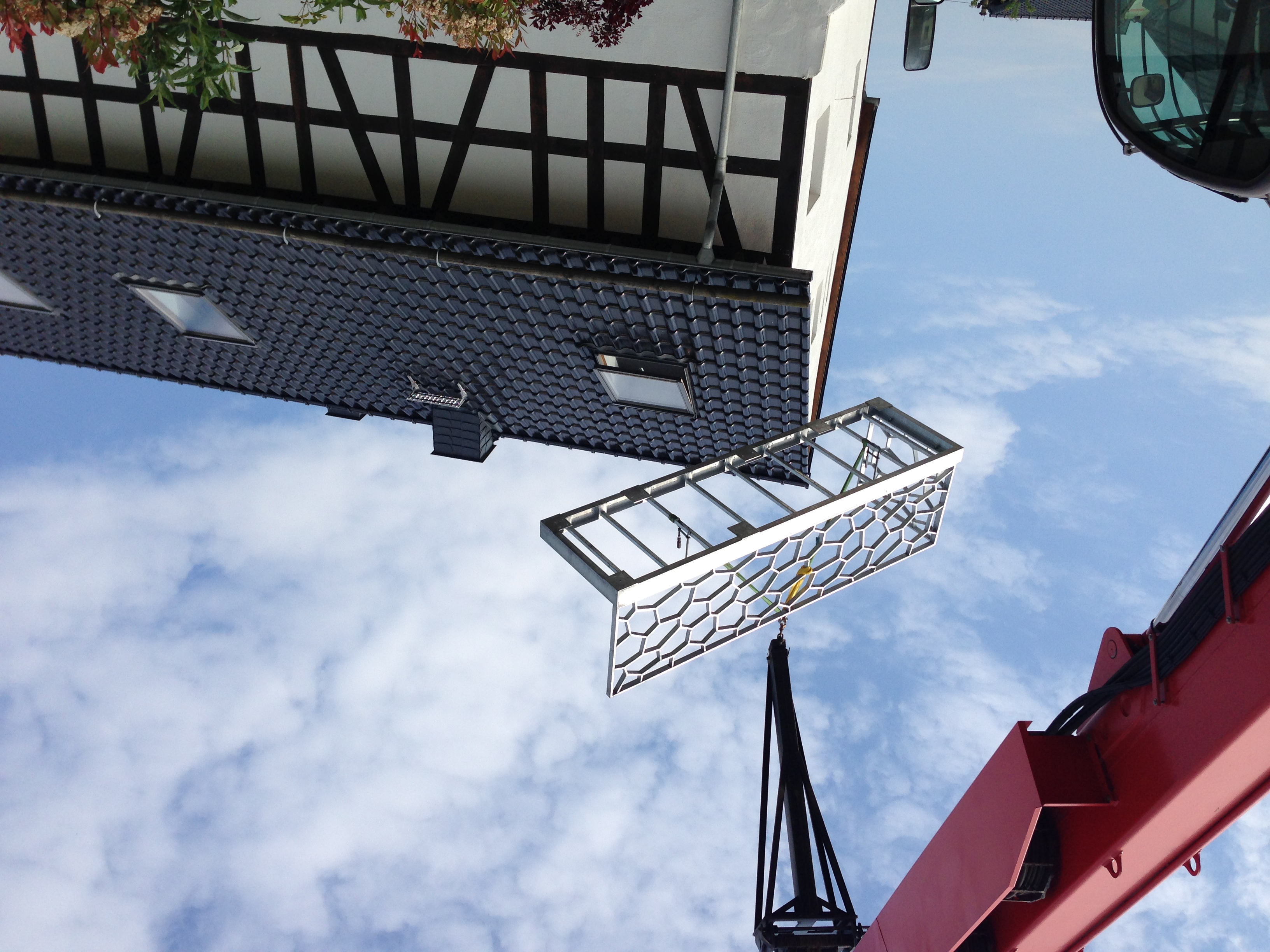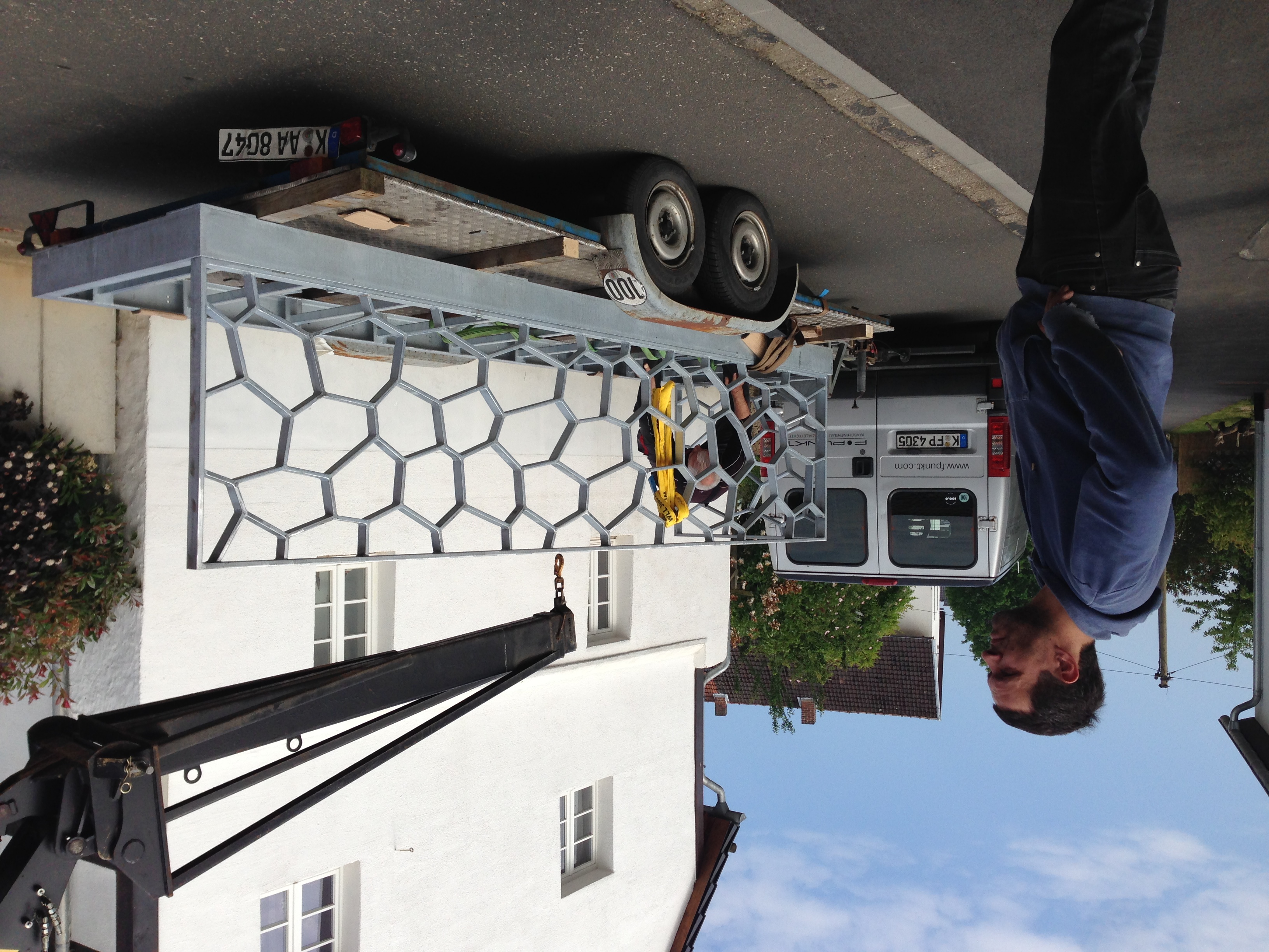 Balkongeländer in Form eines Voronoi-Diagramms aus verzinktem Stahl.
