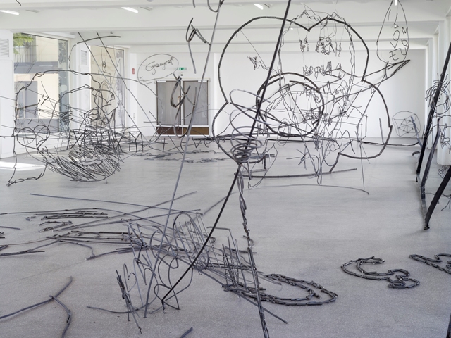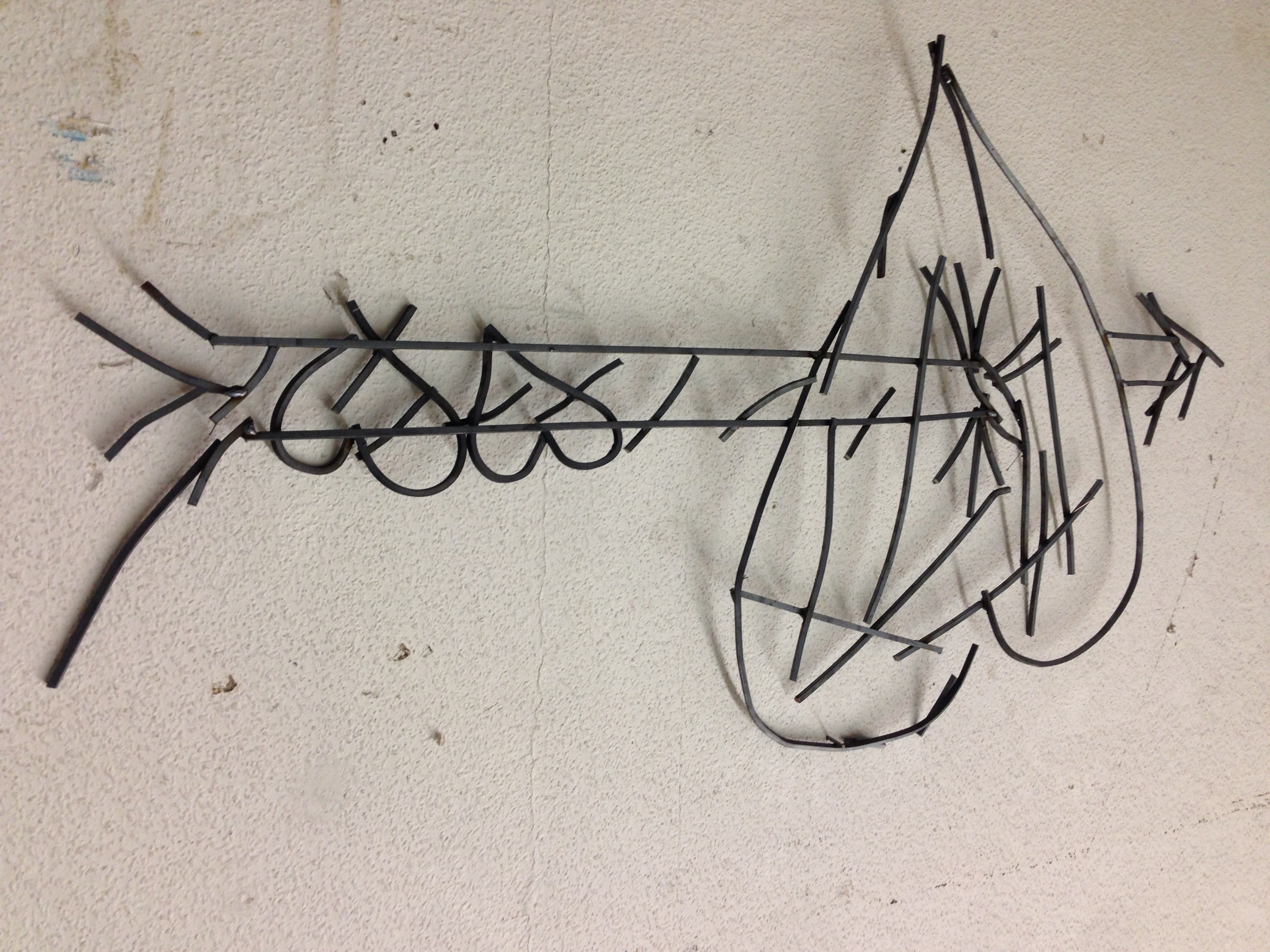 Stahlskulpuren auf Basis von Schulbank-Kritzeleien.