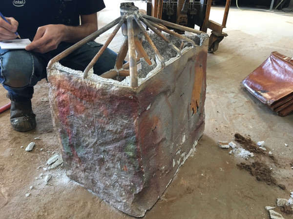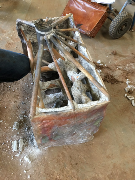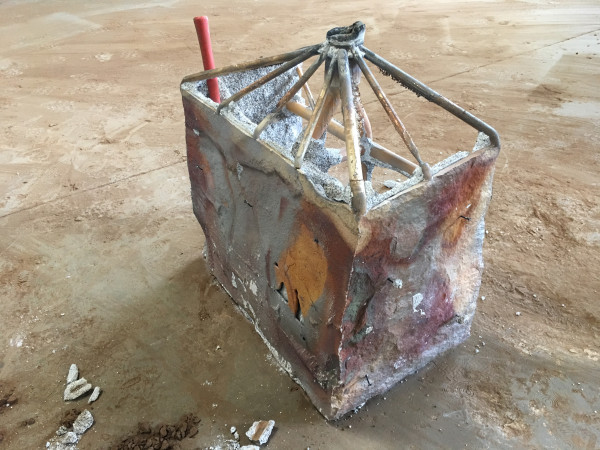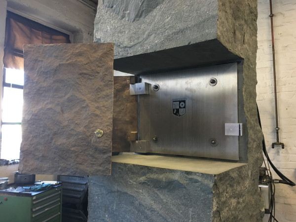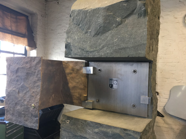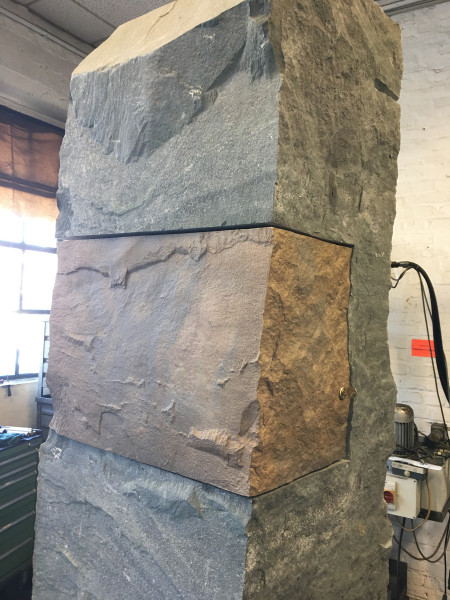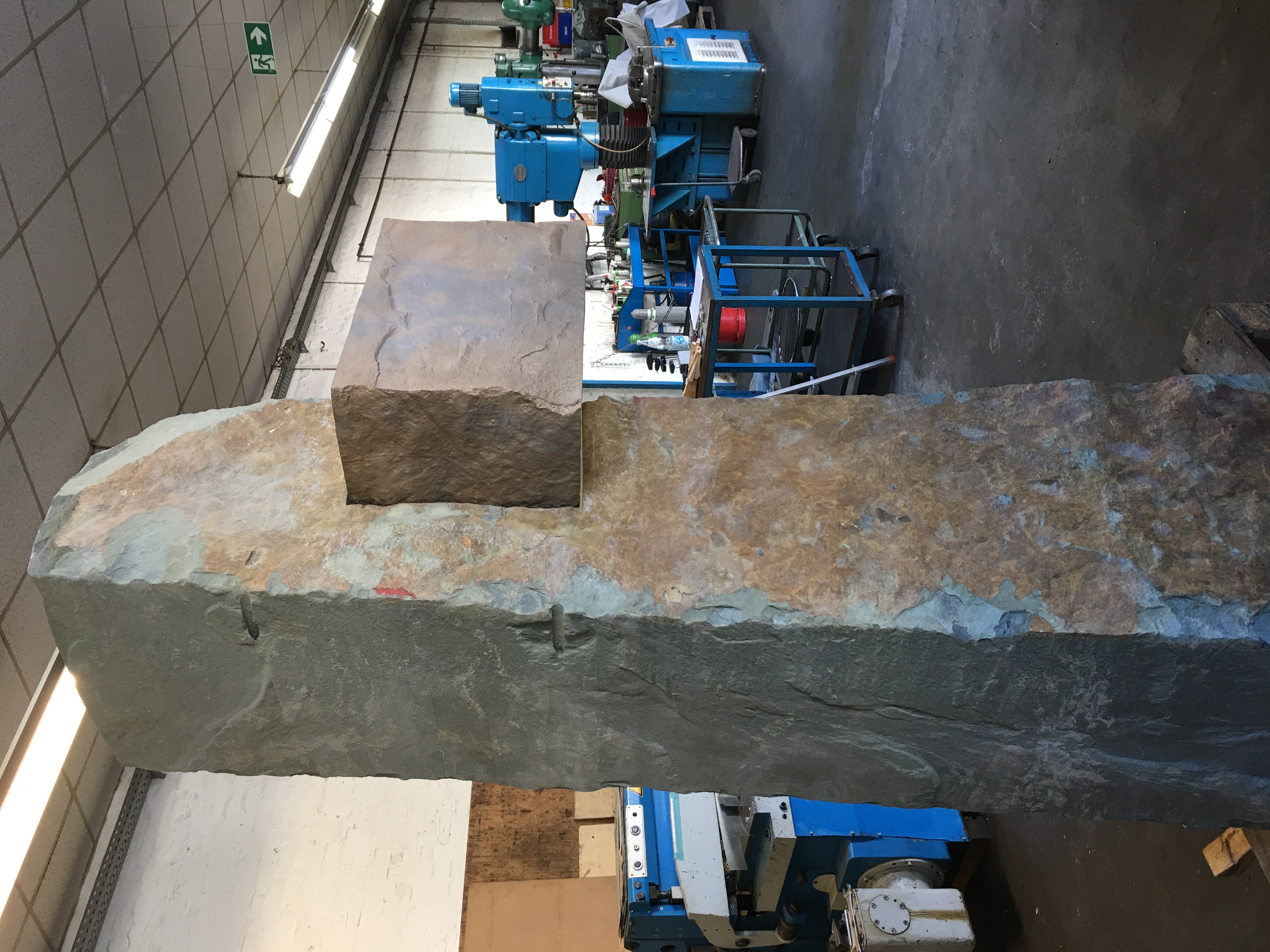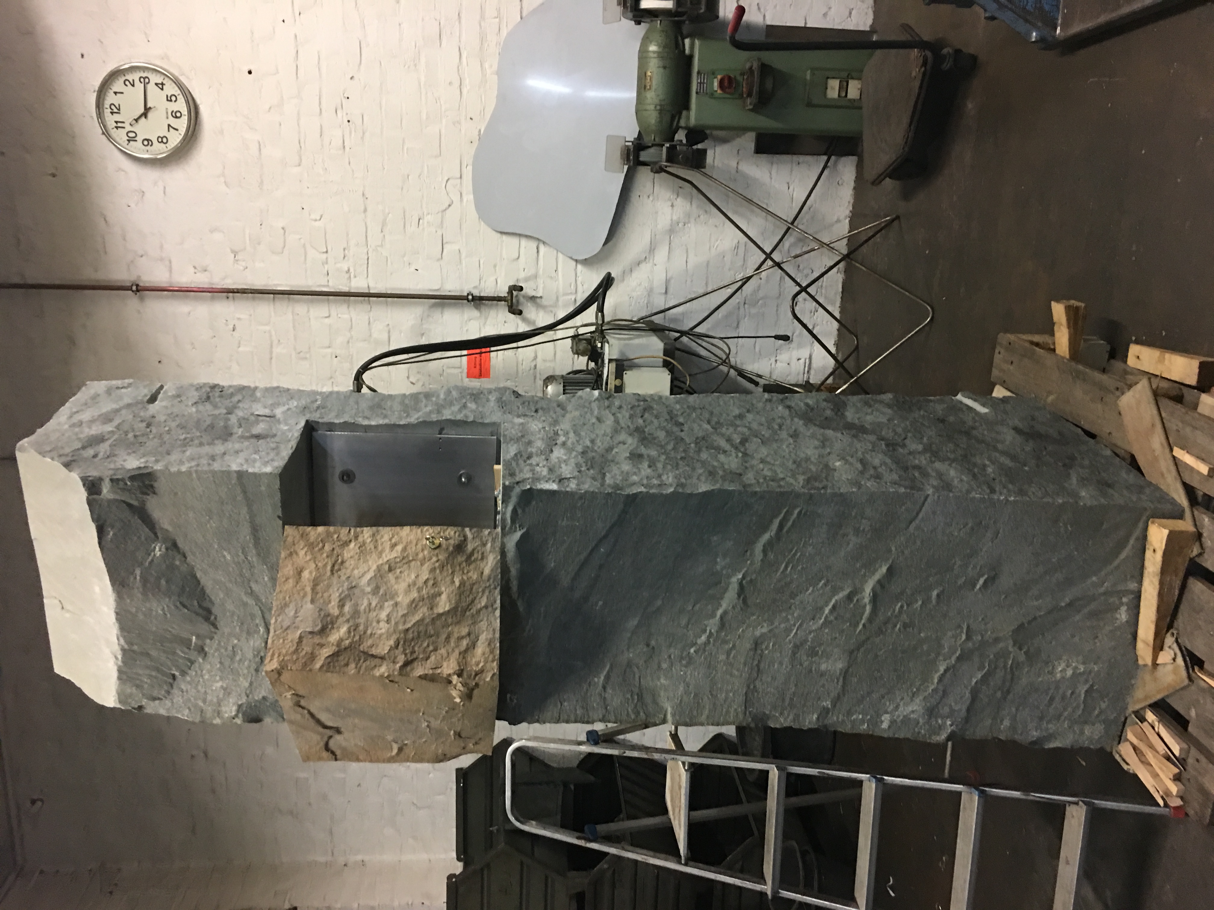 Bronzeguss-Klappe von Abdruck des Original-Steinsegments. Skulptur von Ulrich Rückriem für die Pfarrkirche „Seliger Rupert Mayer“ in Poing.
