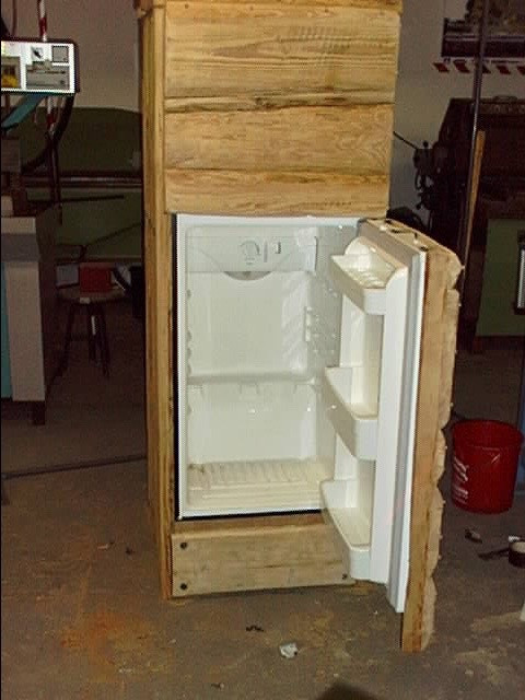 Kühlschrank für "Verstehen Sie Spaß". Verlade des Fernsehkochs Johann Laufer. Alle Fächer und inneren Teile des Kühlschranks konnten per Knopfdruck zum Einsturz gebracht werden. Laufer verzweifelte.